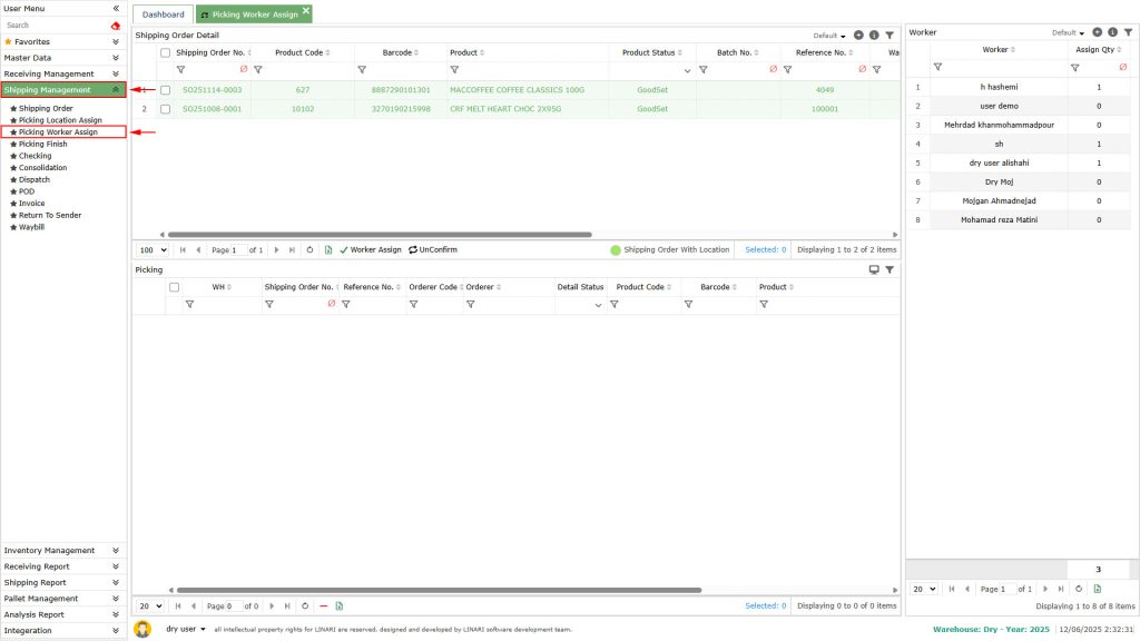 To open this page, click on the Shipping Management menu and then select Picking Location Assign from the submenu.