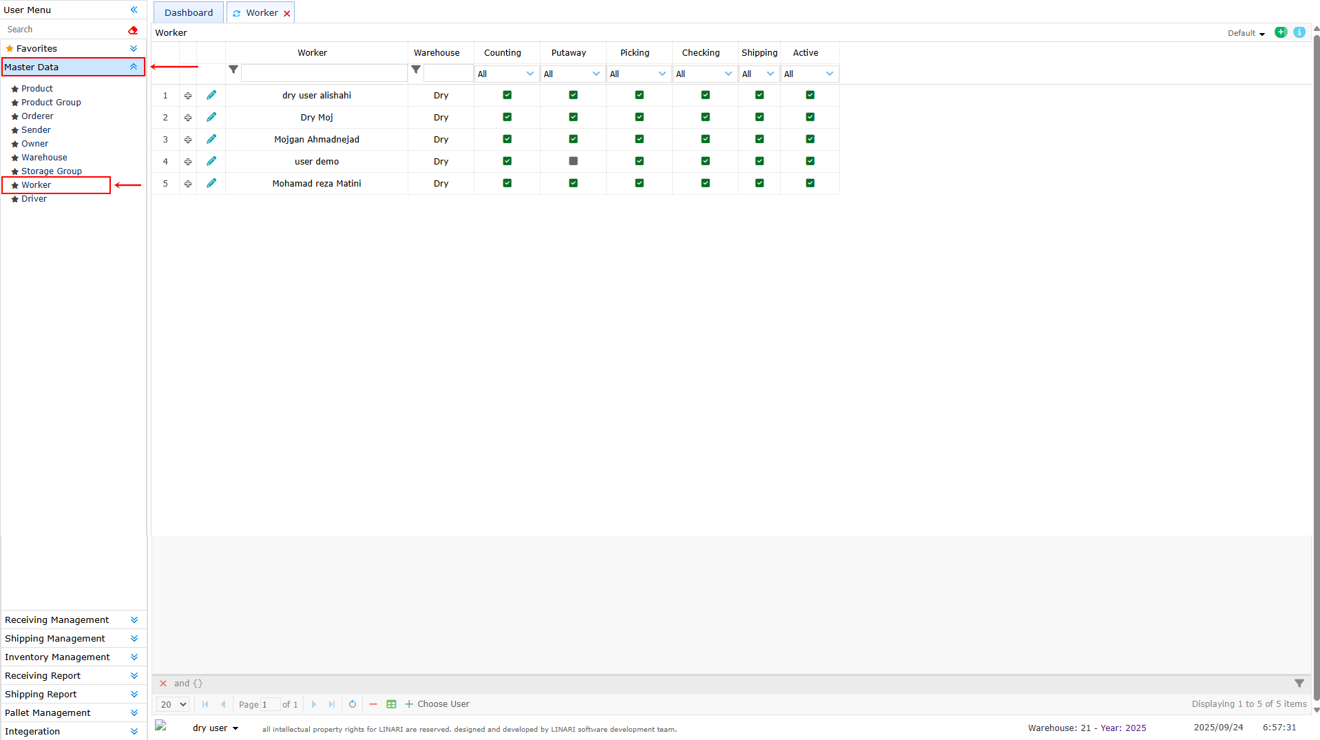 There are various tasks in the warehouse that during the sending and receiving process each worker must be able to complete their duties and record and track information according to the defined access level and assigned responsibilities. Therefore it is necessary to register Workers’ information in the system.